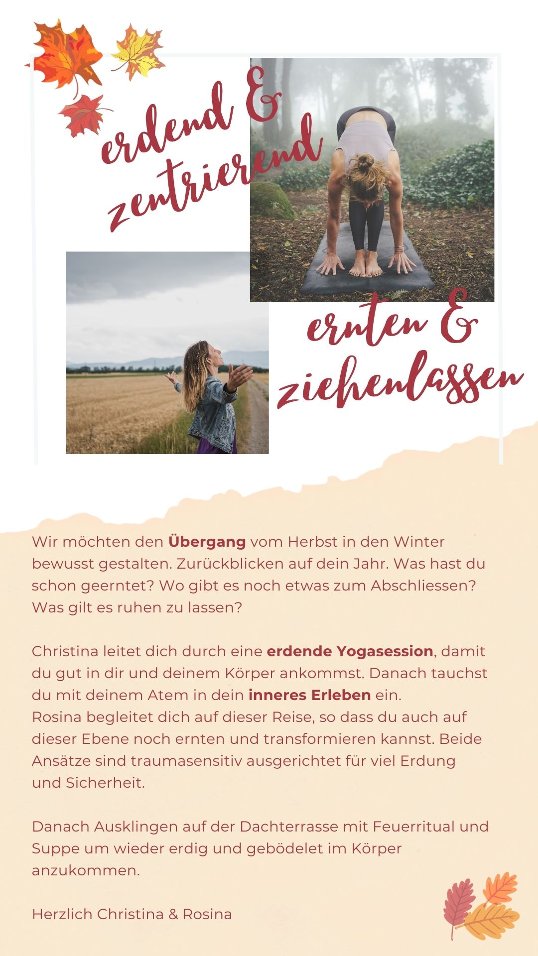 Was für eine coole Kombi! Körper-, Atem- und Kulinarikreise. Alles an einem Abend. Christina führt dich durch die Yogasession. Mal sanft, mal kraftvoll, deinem Körper und Können angepasst.